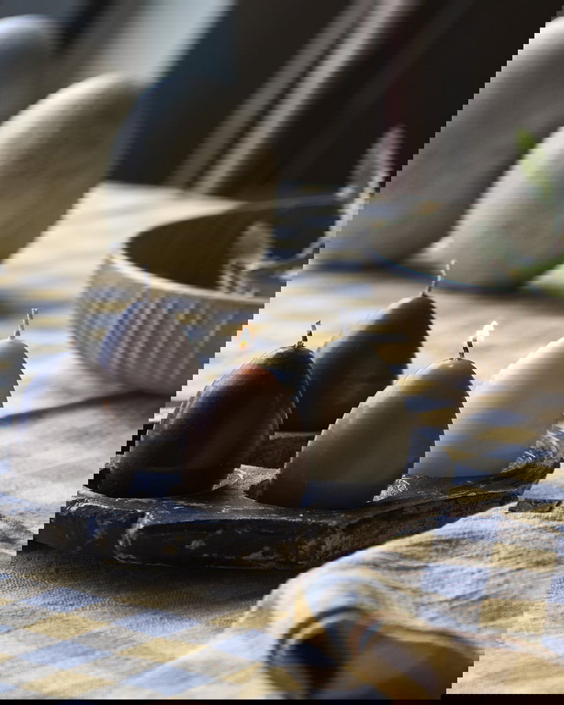 Ett vackert serveringsfat i en stilren beige färg och i ett stengods material som blir en vacker dekoration till middagsbjudningarna. Hon kombinerar funktion med stil och skapar en levande, elegant bordsupplevelse.