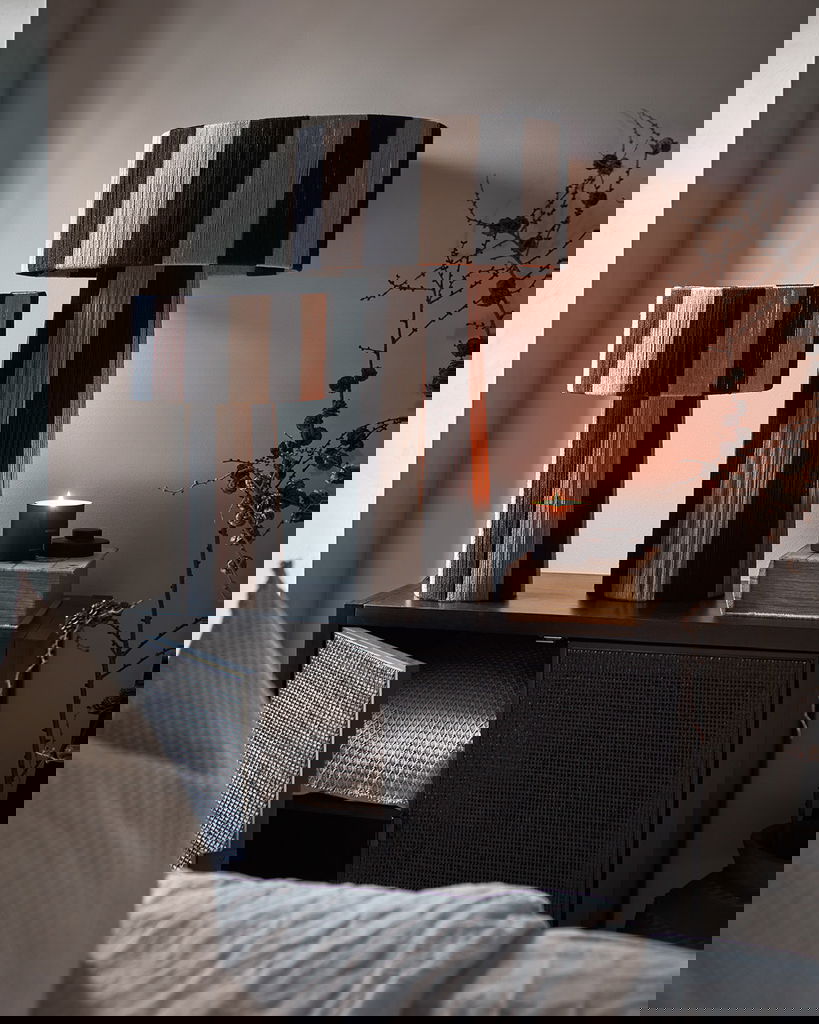 En stilren och trendig bordslampa i svart och naturfärgat jute. Jullan är en stor bordslampa och blir en iögonfallande detalj på sidobordet eller som en mindre golvlampa.