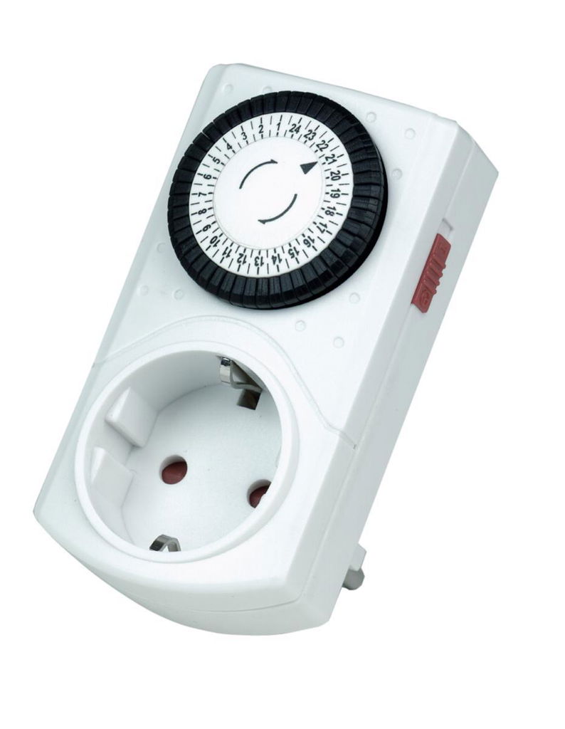 Klockströmbrytare dygn ojordad från Gelia. Liten och nätt klockströmbrytare för inomhusbruk. Dygnsvariant. Kortaste intervall 30 min. Max 48 st till- och frånslag per dygn. Max 3680 W.