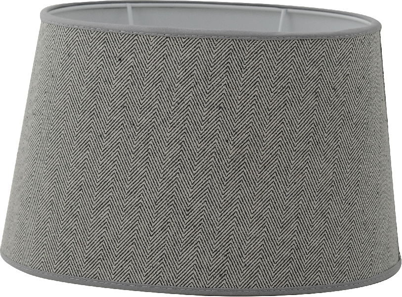 En svart/grå lampskärm med ett "zickzack" mönster med matchande kantband i grått. Är en klassisk oval lampskärm som passar perfekt på smalare utrymmen som på ett fönsterbräde.