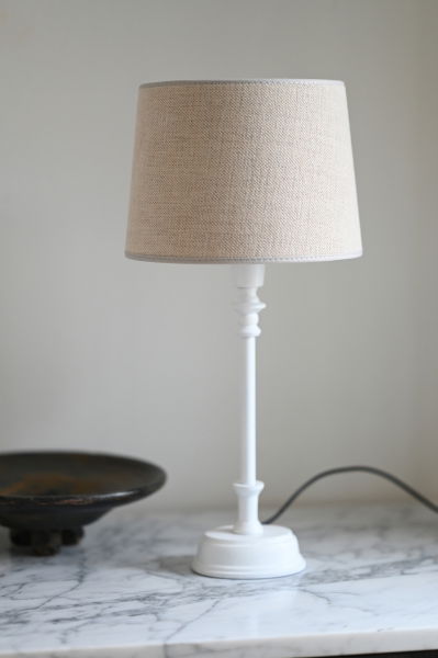 En enkel och klassisk lampfot utförd i vit metall. Med sin stilrena design passar den med flera olika lampskärmar och gör sig fin i ett fönster eller på ett sängbord.