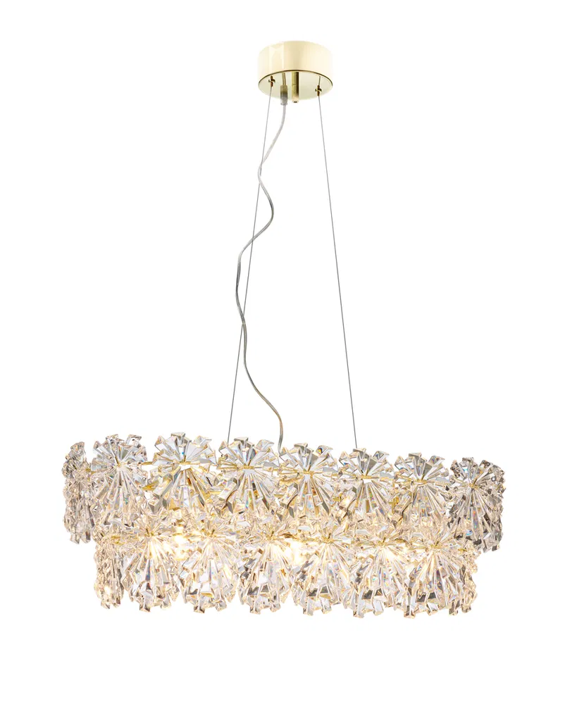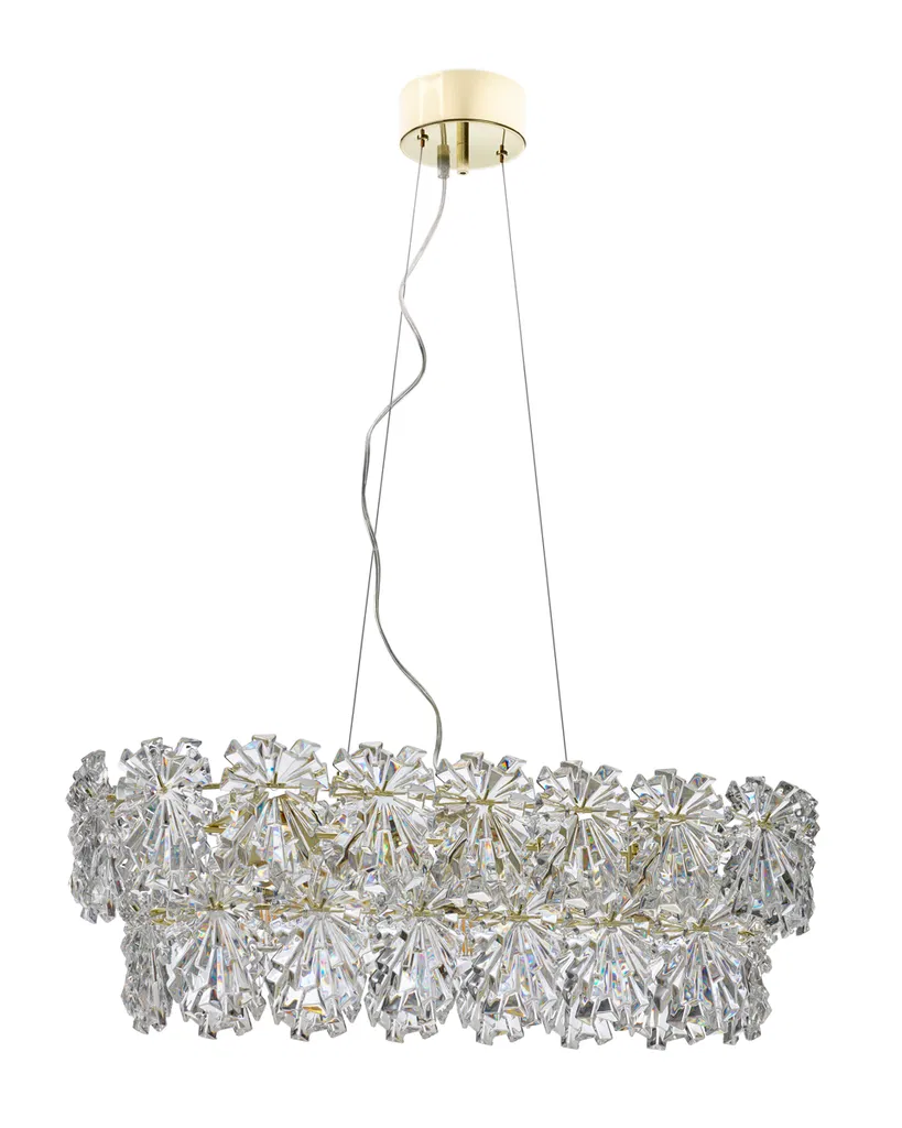 En exklusiv och elegant taklampa som är utrustad med klara akrylprismor som ger ett fint, gnistrande och lyxigt sken i rummet.