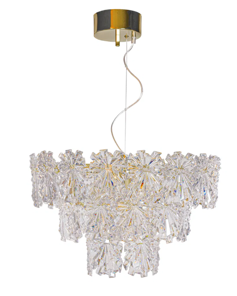 En exklusiv och elegant taklampa som är utrustad med klara akrylprismor som ger ett fint, gnistrande och lyxigt sken i rummet.