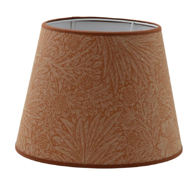 Marigold är ett av William Morris tyger och är tillverkat i "vävt" tyg i en varm rost röd färg. Har en enkel rund formgivning och passar perfekt till fönsterbrädan eller sängbordet och passar enkelt till nästan alla lampfötter.