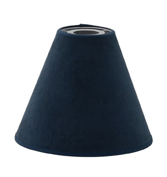 En hemtrevlig skärm som är tillverkad i ett mörkblått polyester tyg som har en sammetsfinish. Har ett E27 toppringfäste som är anpassad för golvlampor och vägglampor med böjd arm.