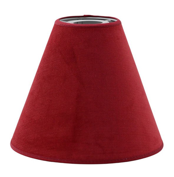 En hemtrevlig skärm som är tillverkad i ett rött polyester tyg som har en sammetsfinish. Har ett E27 toppringfäste som är anpassad för golvlampor och vägglampor med böjd arm.