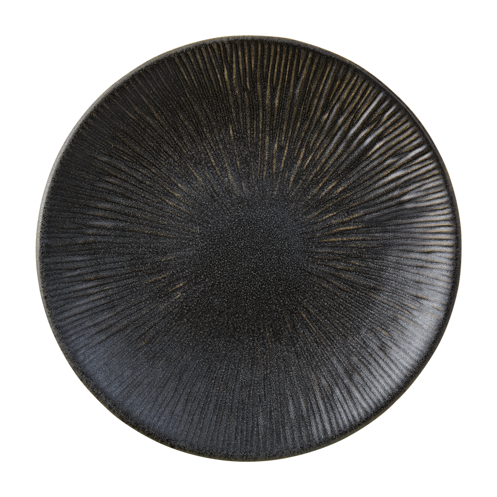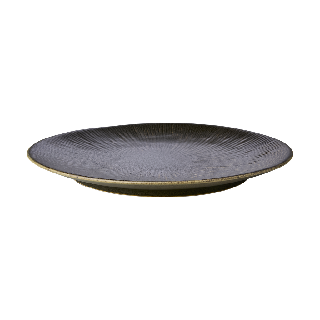 En elegant tallrik i stengods med en djup, jordnära mörkbrun ton som ger dukningen karaktär och värme. Den robusta och matta ytan skapar en rustik men samtidigt sofistikerad känsla, perfekt för både vardagsmiddagar och mer festliga tillfällen.