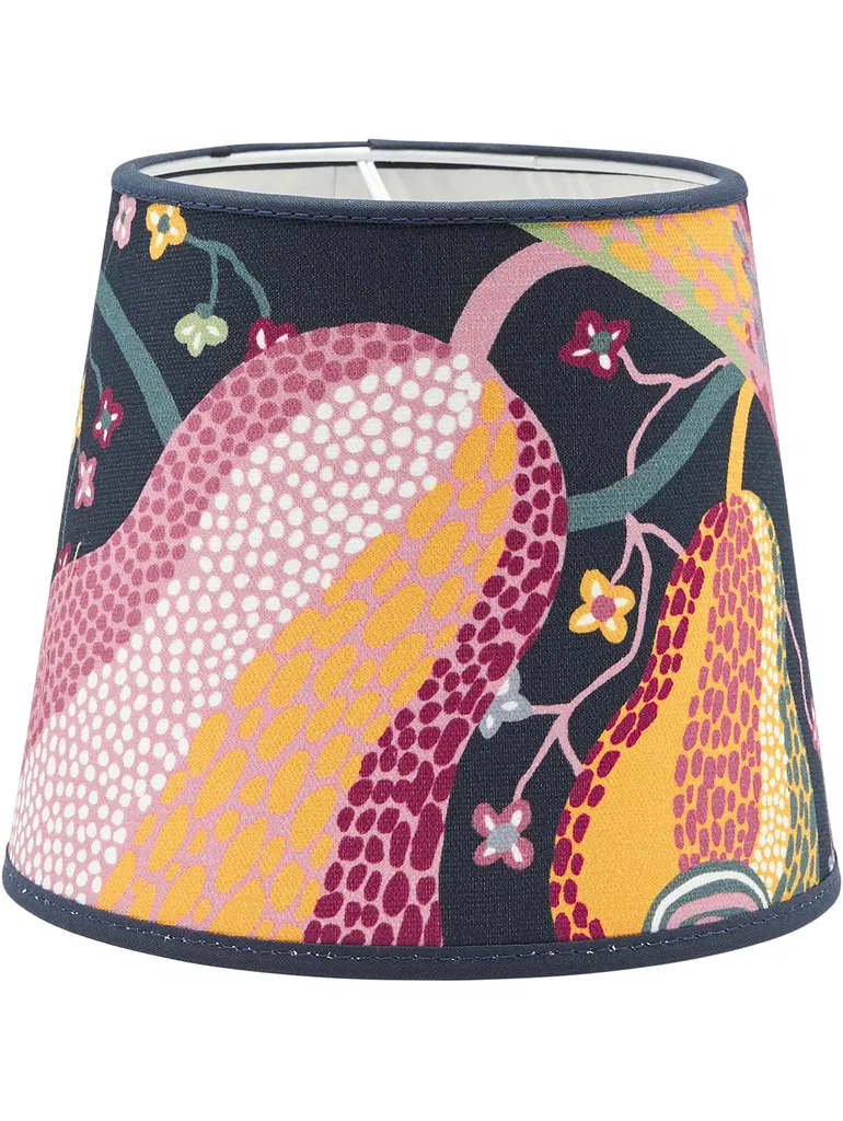 En hemtrevlig skärm som är tillverkad i ett bomullstyg och har det populära frank mönstret. Har en enkel rund form. Passar perfekt till fönsterbrädan eller sängbordet och passar enkelt till nästan alla lampfötter.