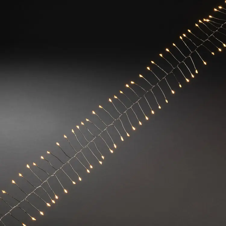 Micro Clusterslinga 400L Silver/Amber från Konstsmide. En vacker ljusslinga i silverfärg med micro ljuskällor som lyser med ett Amberfärgat sken.