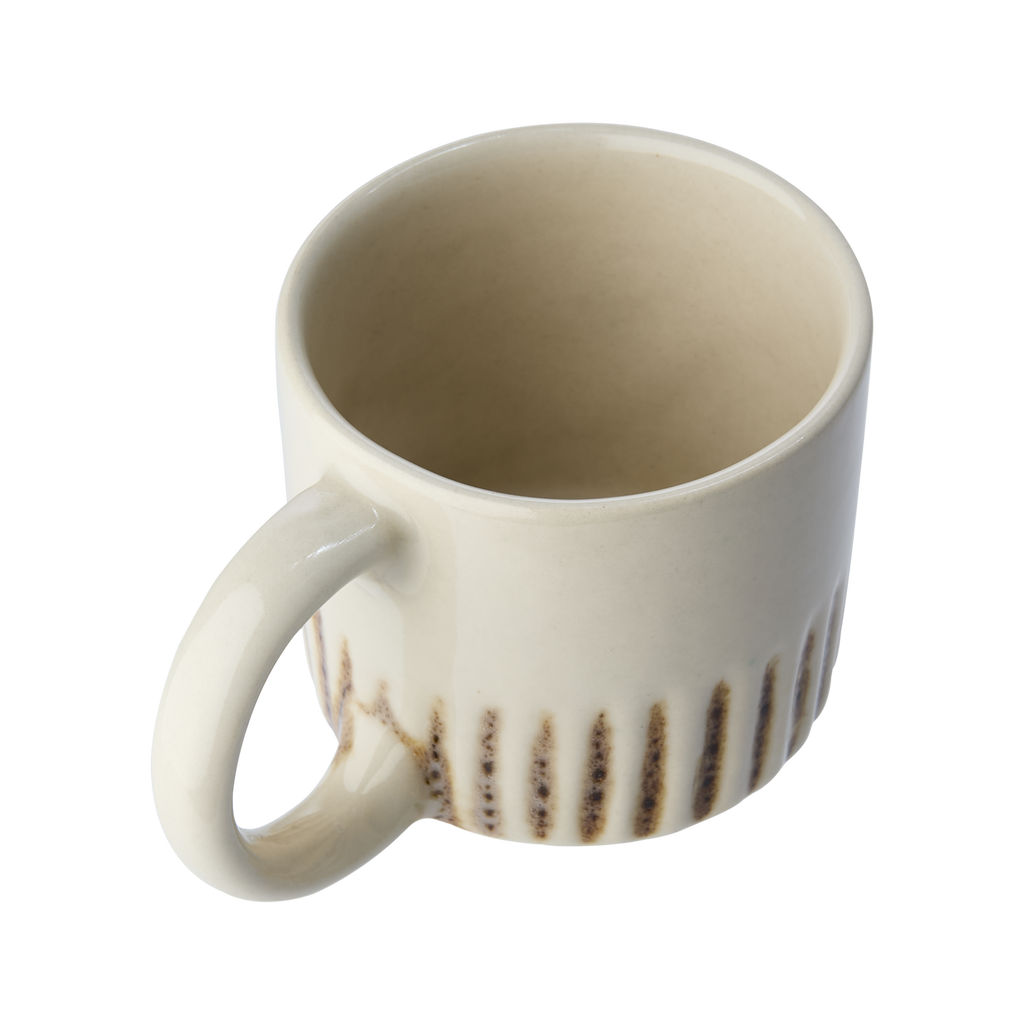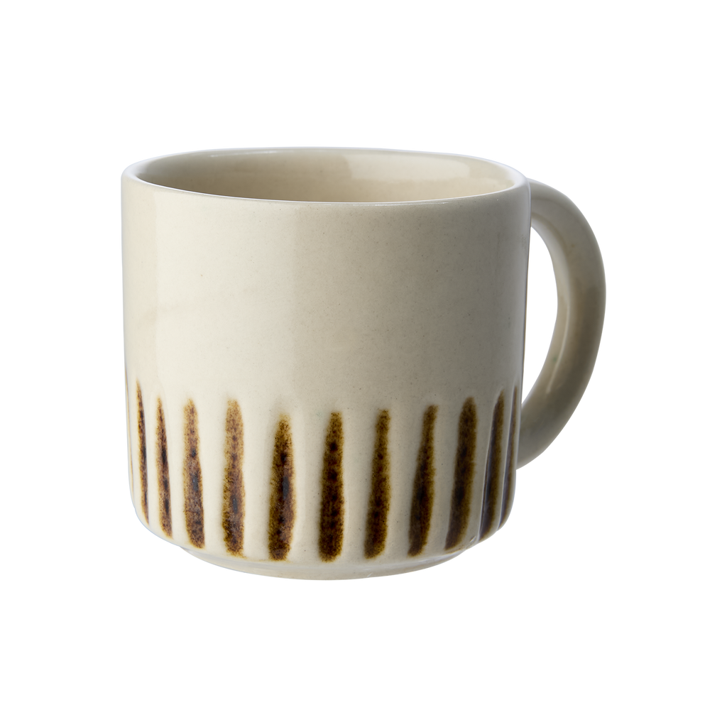 Stilren kopp i elfenbensvitt och brunt stengods med räfflad design. Perfekt för kaffe och te. Tidlös skandinavisk känsla som passar alla dukningar och hem.