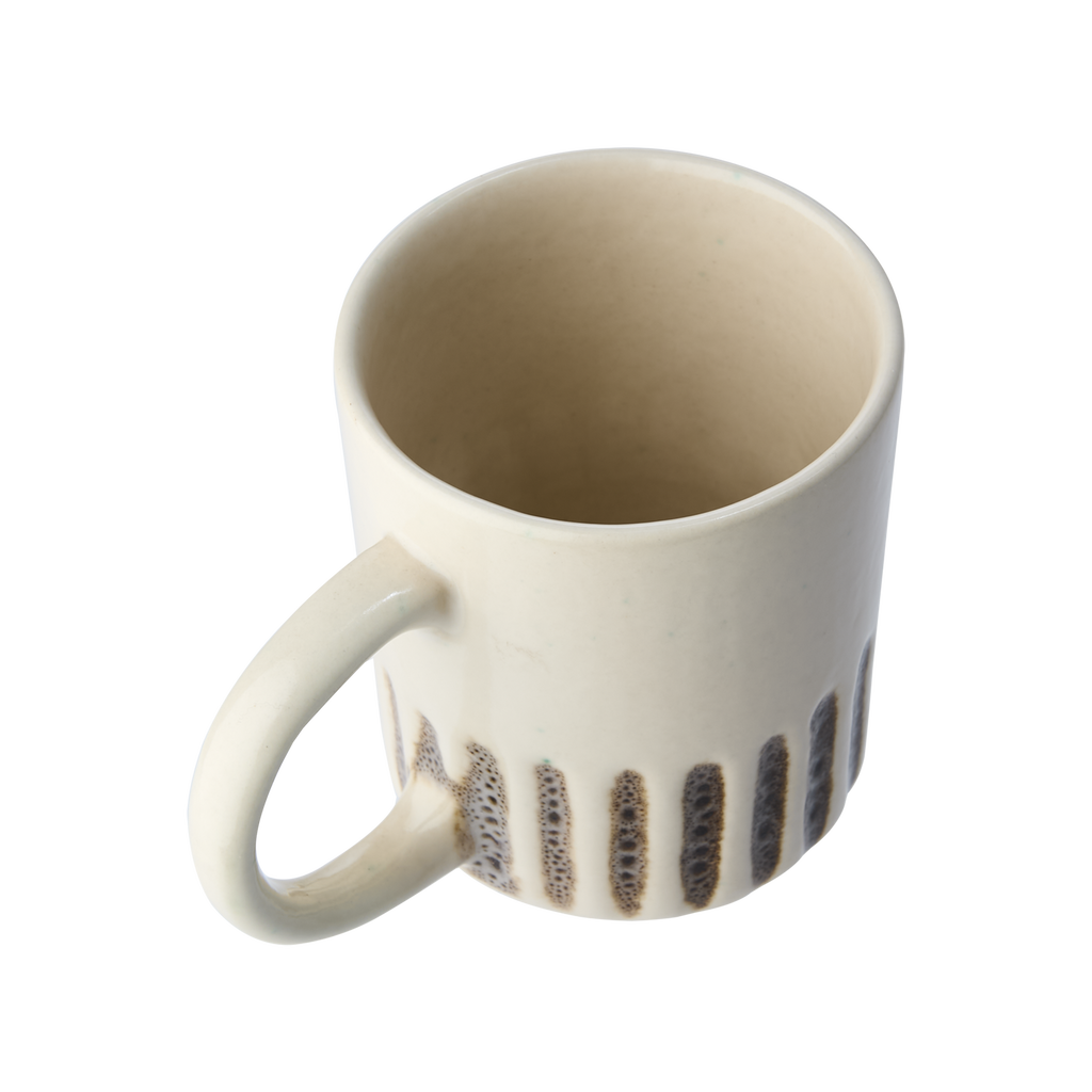 Rymlig kopp i Elfenben/Brun stengods med räfflad design. Perfekt för kaffe och te. Tidlös skandinavisk känsla som passar alla dukningar och hem.