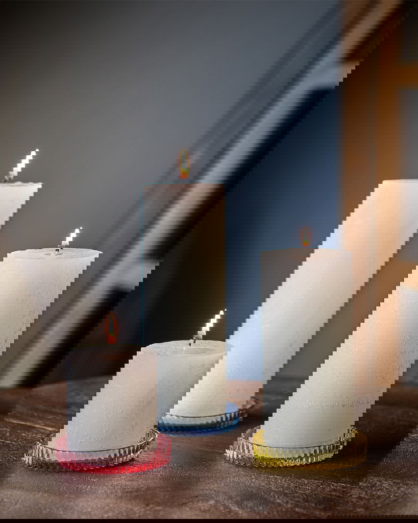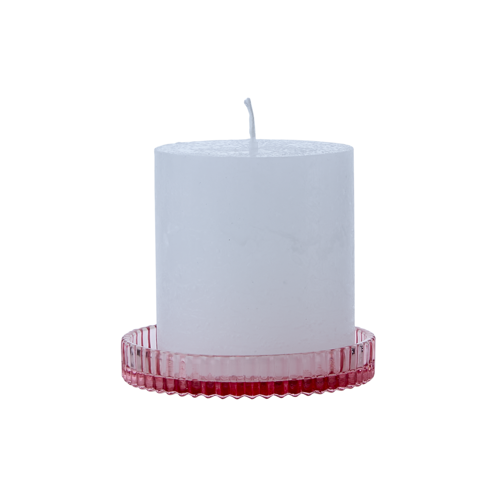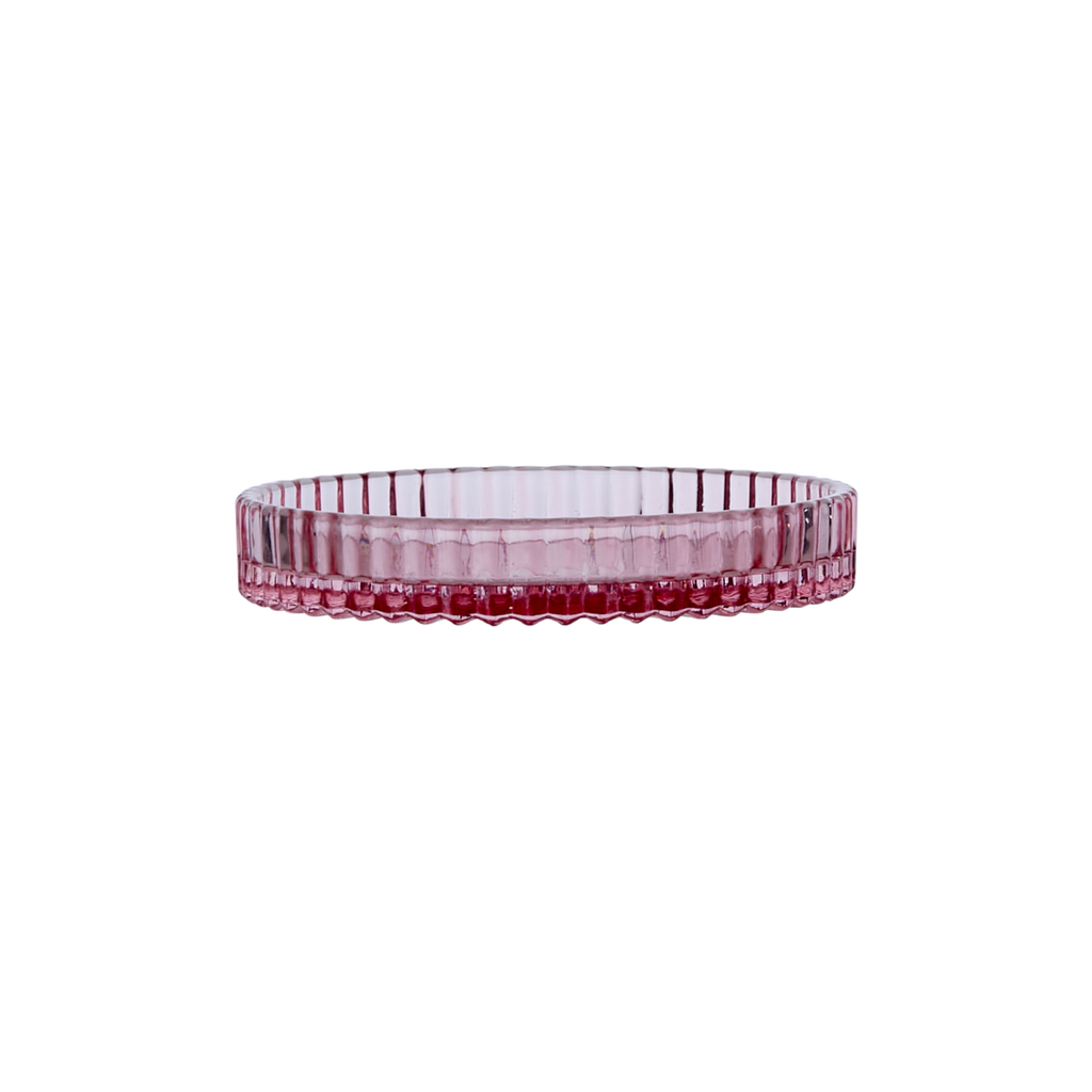 Fat tillverkad i rosa glas som är till för blockljus men går även att använda som glasunderlägg eller som annan inredningsdekoration. Finns i tre stycken fina somriga färger.