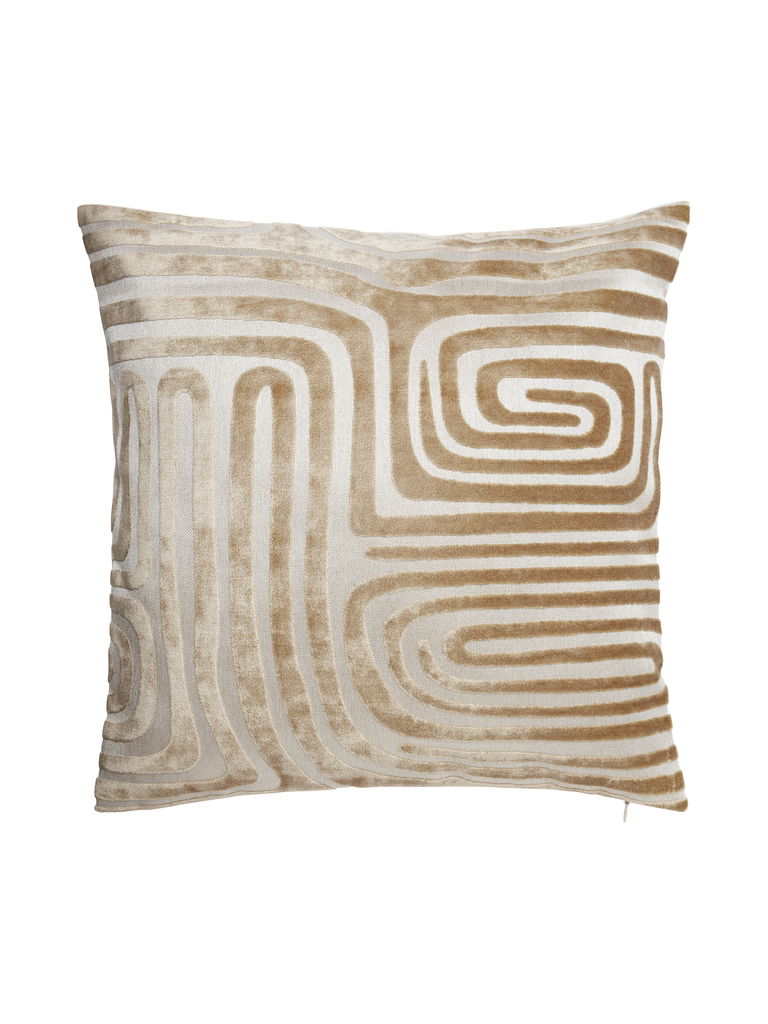Molly Kuddfodral 45x45cm Iskaffe från Svanefors. Ett kuddfodral i vävd sammetsrelief i ett häftigt mönster på framsidan och enfärgad på baksidan.