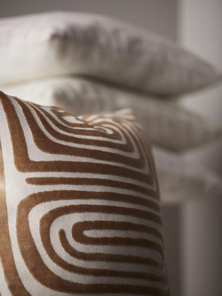 Ett kuddfodral i vävd sammetsrelief i ett häftigt mönster på framsidan och enfärgad på baksidan. Har en dragkedja i nederkant och har storleken 45x45cm.