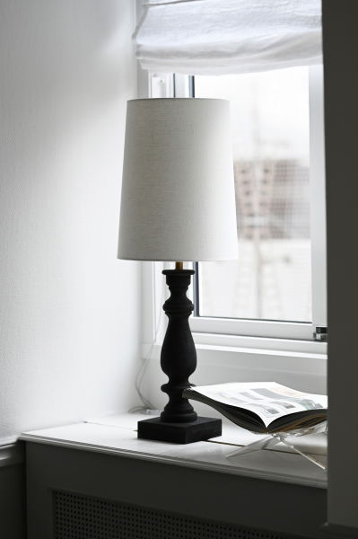 Elegant svart lampfot i klassisk design med robust träkonstruktion. Perfekt för att skapa stämning i ditt hem.