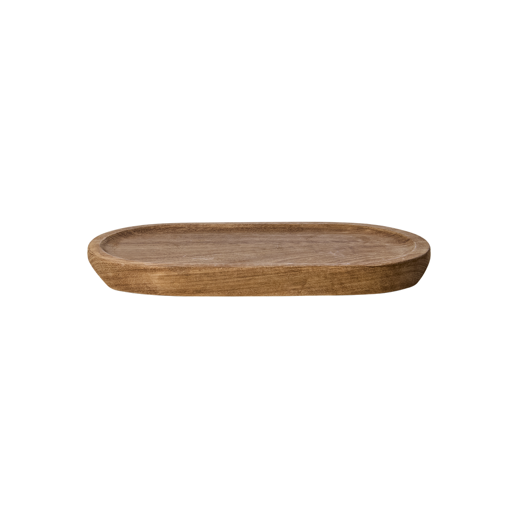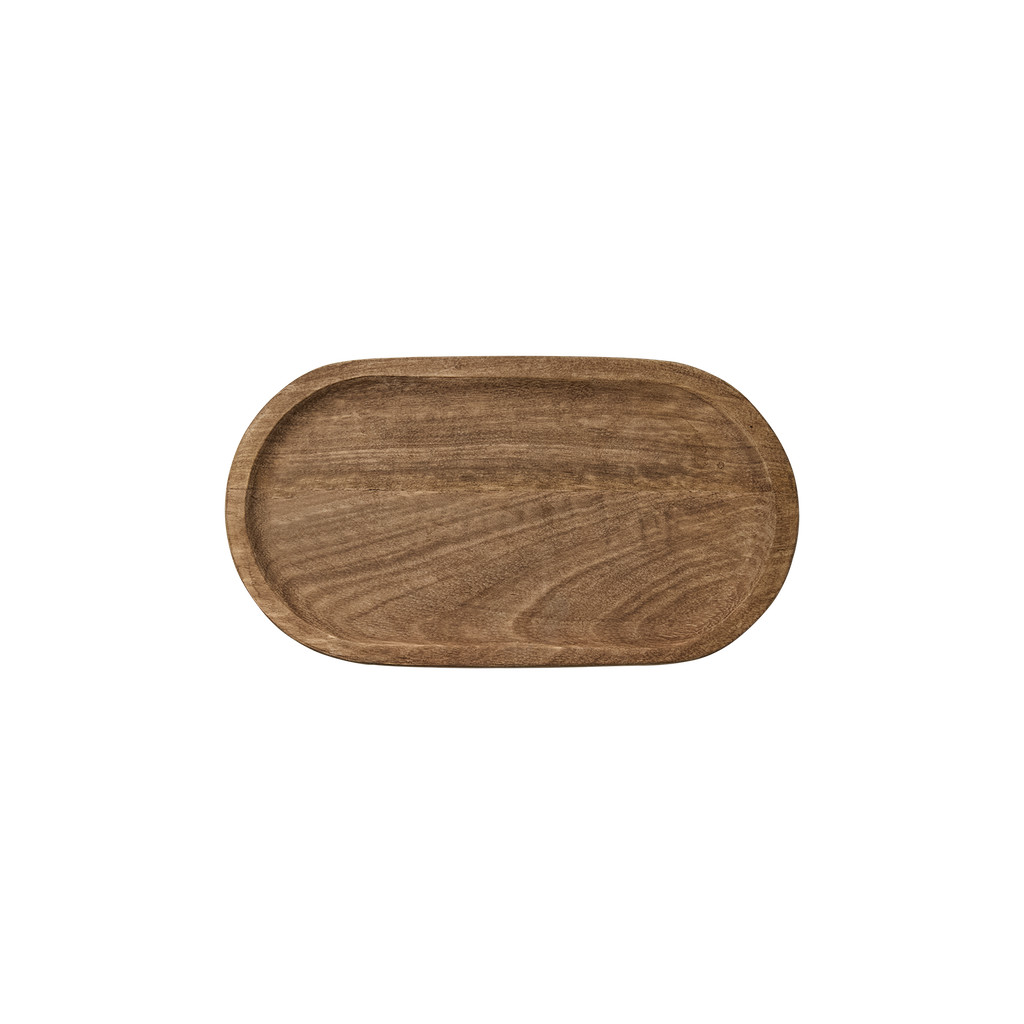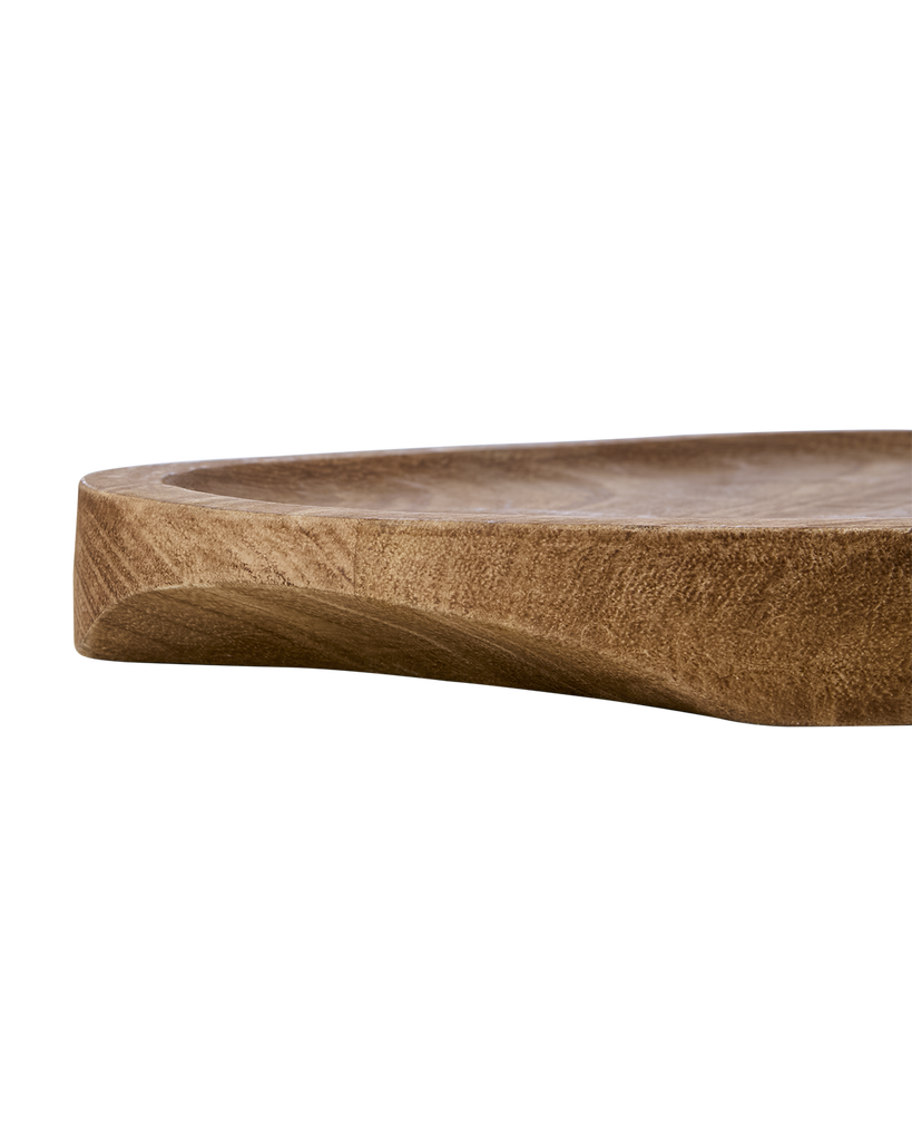 Ett rundat fat i mangoträ i en naturfärg som tillför en elegans till din servering. Karaktären i träet lyfts fram med den varma och naturliga tonen och varje exemplar bär sin unika ådring.