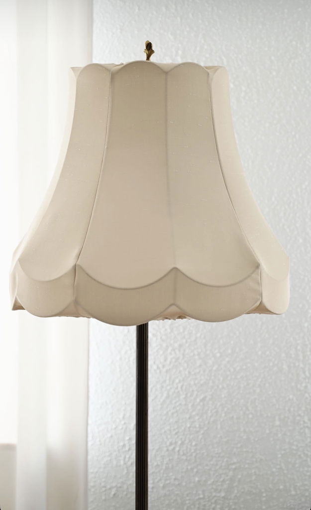 Hålet i stommen är 10mm i diameter. Opulence är i ett mjukt champagne färgat tyg med mjuka detaljer, som passar med golvlampor som har ett rörfäste/toppdiskfäste!