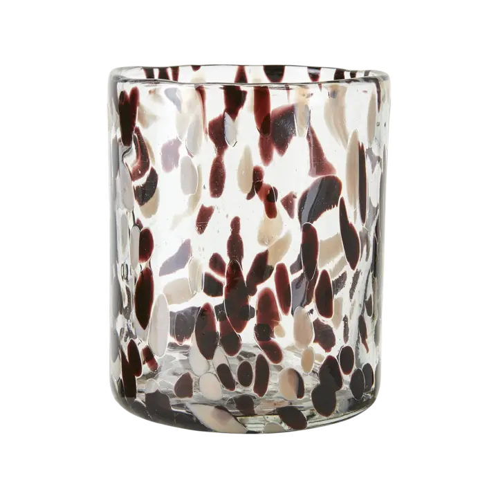 En vacker värmeljushållare i en rak och klassisk formgivning, tillverkat i munblåst glas i en brun/beige/svartfärg. Gör sig fin i alla miljöer. Välj mellan två storlekar.