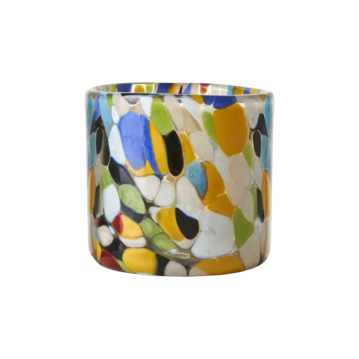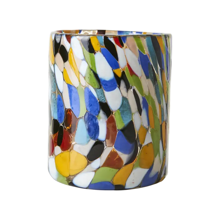 En vacker värmeljushållare i en rak och klassisk formgivning, tillverkat i munblåst glas i en flerfärgad finish. Gör sig fin i alla miljöer. Välj mellan två storlekar.
