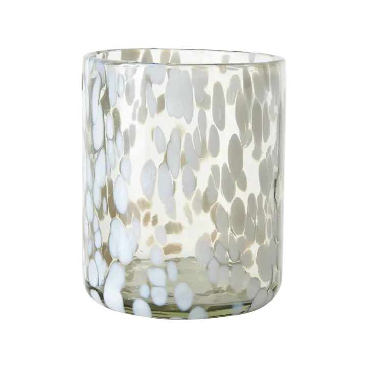 En vacker värmeljushållare i en rak och klassisk formgivning, tillverkat i munblåst glas i en vit/isblå färg. Gör sig fin i alla miljöer. Välj mellan två storlekar.