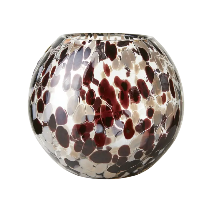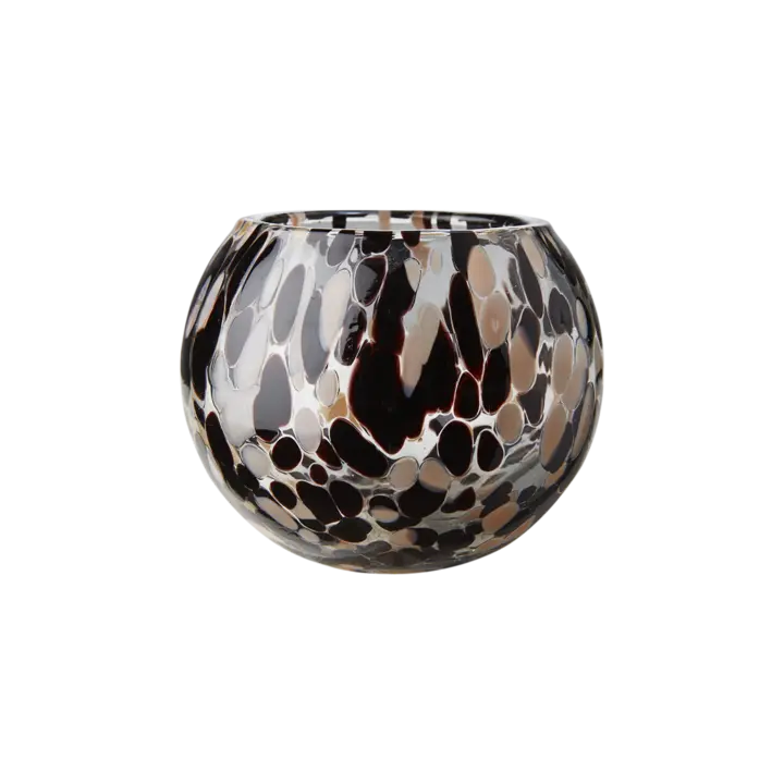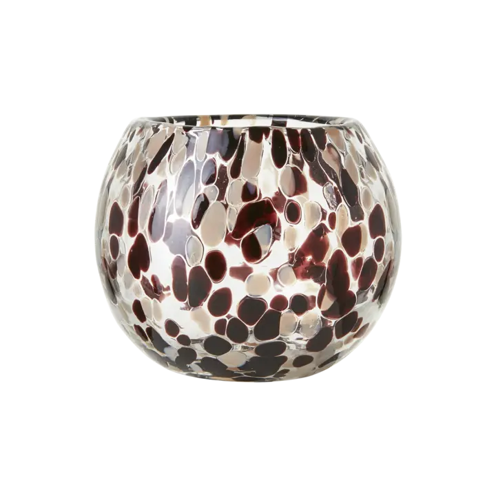 En vacker värmeljushållare i en rund formgivning, tillverkat i munblåst glas i en brun/beige/svart färg. Gör sig fin i alla miljöer. Välj mellan tre storlekar.