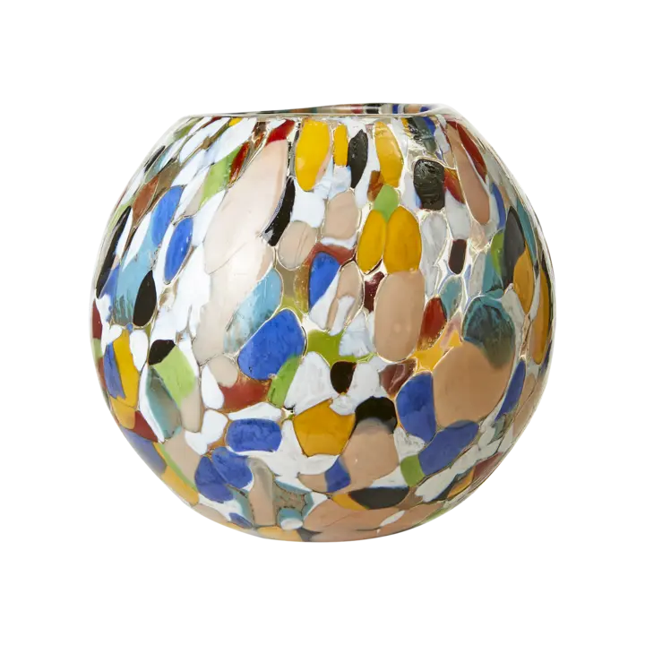 En vacker värmeljushållare i en rund formgivning, tillverkat i munblåst glas i en flerfärgad finish. Gör sig fin i alla miljöer. Välj mellan tre storlekar.