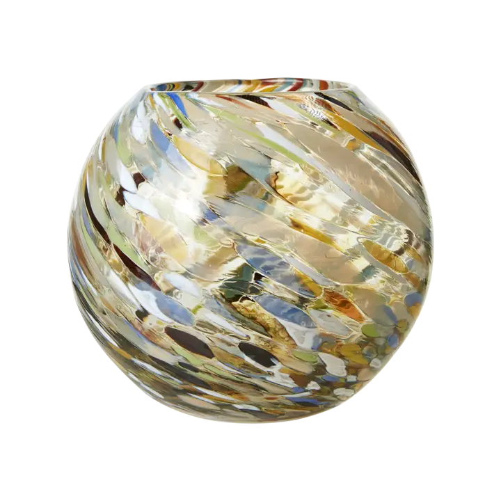 En vacker värmeljushållare i en rund formgivning, tillverkat i munblåst glas i en flerfärgad finish. Gör sig fin i alla miljöer.