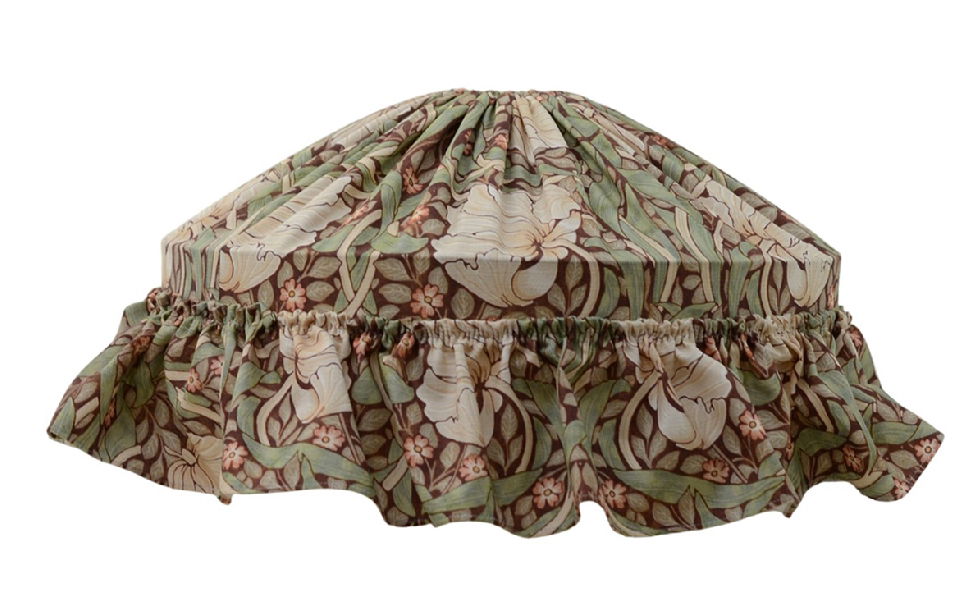 En elegant taklampa med en fin volangkjol, är klädd i ett av William Morris tyger som heter Pimpernel och kommer i färgen "Brick". Välj mellan tre olika storlekar, samtliga kommer med ett E27-ringfäste.