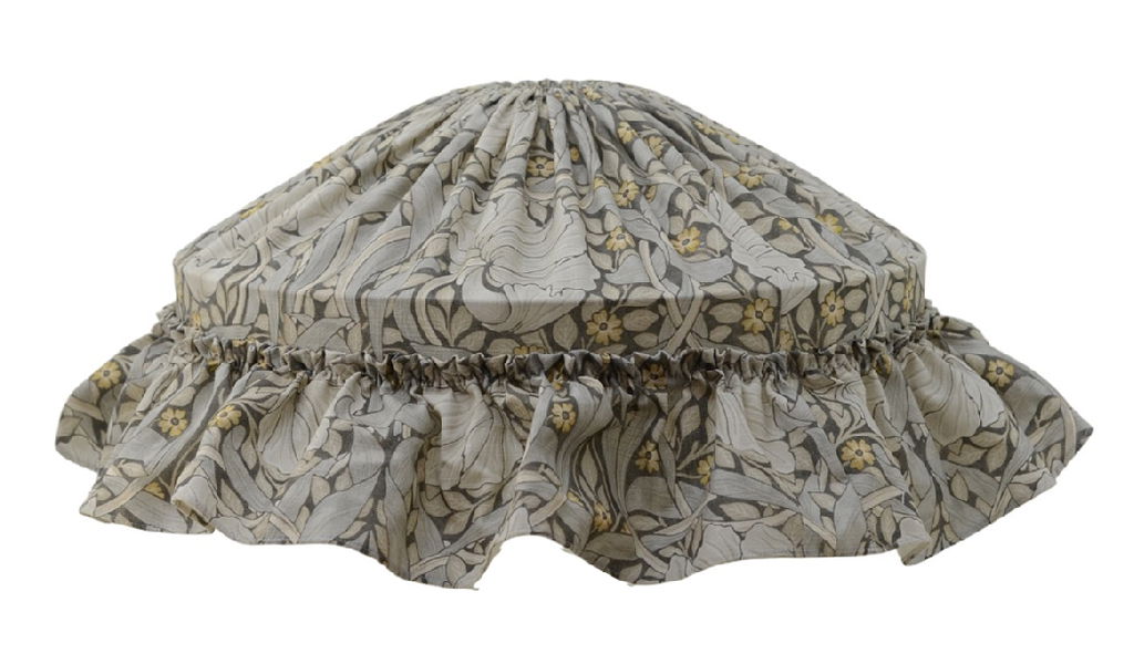En elegant taklampa med en fin volangkjol, är klädd i ett av William Morris tyger som heter Pimpernel och kommer i färgen "Flint". Välj mellan tre olika storlekar, samtliga kommer med ett E27-ringfäste.