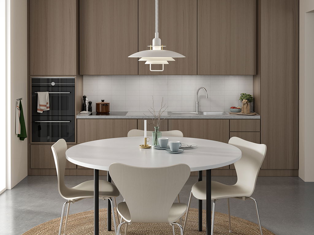 Primus är en populär kökspendel med tidlös design som anpassats efter trenderna genom åren. Är tillverkad i vit metall med mässingsfärgade detaljer. Den har ett handtag i metall som gör det enkelt att justera höjden över matbordet med hissupphänget som är en klassisk favorit genom tiderna.