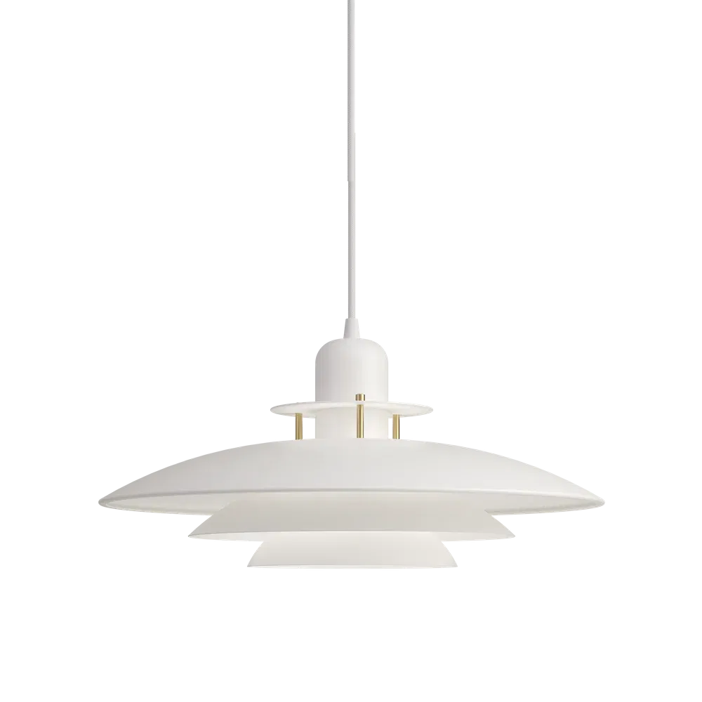 Primus är en populär kökspendel med tidlös design som anpassats efter trenderna genom åren. Är tillverkad i vit metall med mässingsfärgade detaljer. Perfekt för att ge stil och extra ljus över matbordet, denna dekorativa pendel tillför en modern touch i vilket rum som helst.