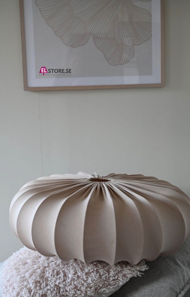 Pumkin takskärmar stretch sand lyx från Hallbergs Belysning har en mjuk formgivning och tillverkad i sandfärgad bomullstrikå. Ger ifrån sig en mysig mängd belysning och blir en trevlig detalj i taket.