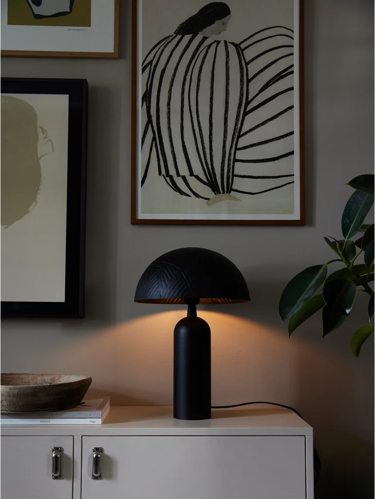 Ribble lampskärm i matt svart metall med ett hamrat dekorativt mönster. Ger en exklusiv och modern stil. Passar med fördel till carter bordslampa men gör sig även snygg med andra designs.