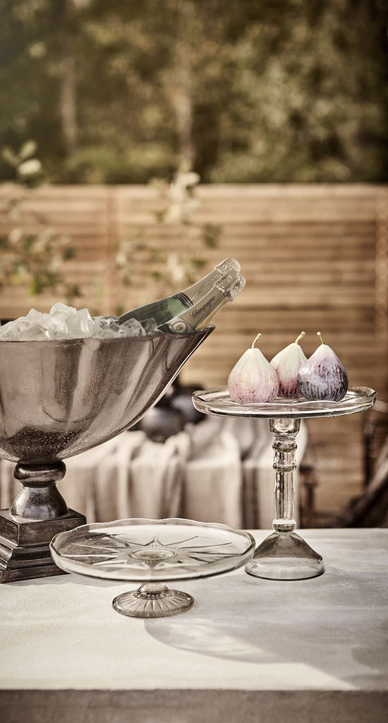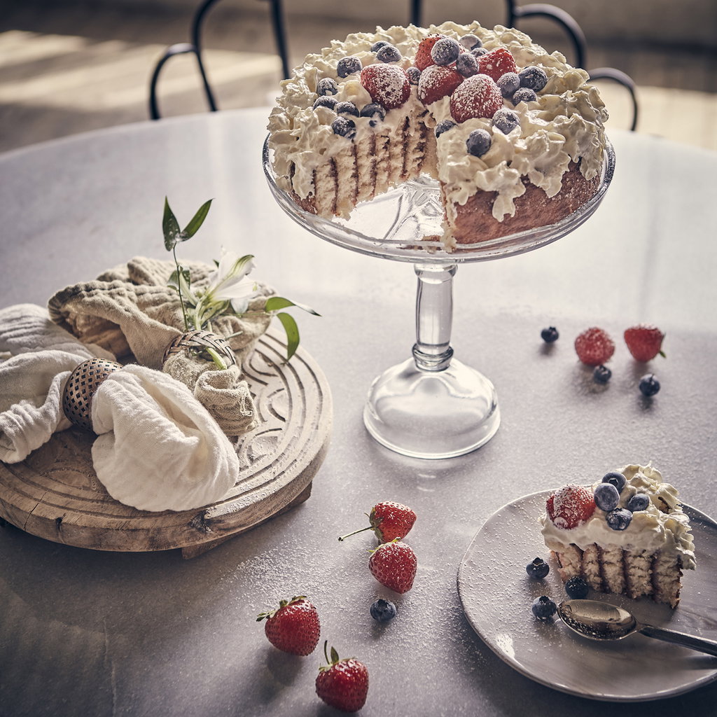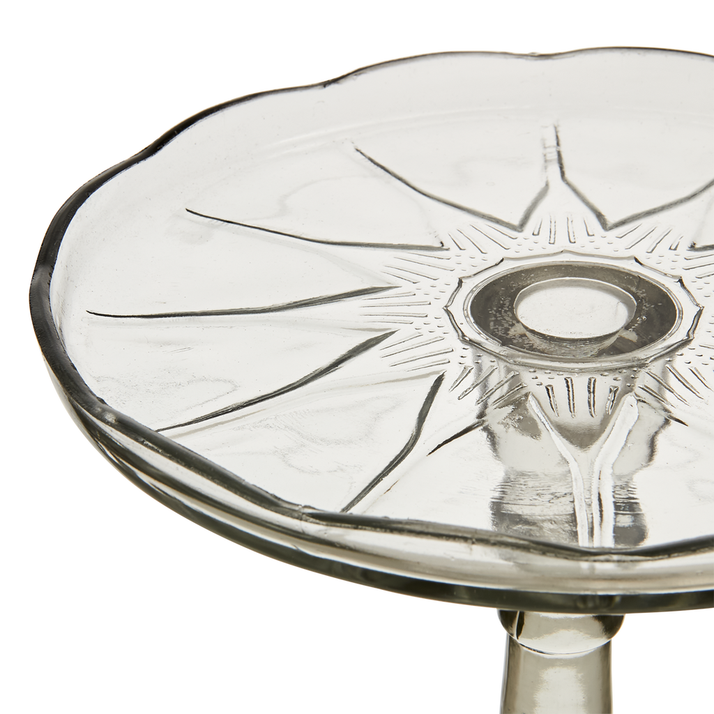 Ett elegant och tidlöst uppläggningsfat i klart glas med mjuka detaljer, som förhöjer presentationen av kakor, bakverk och små aptitretare.