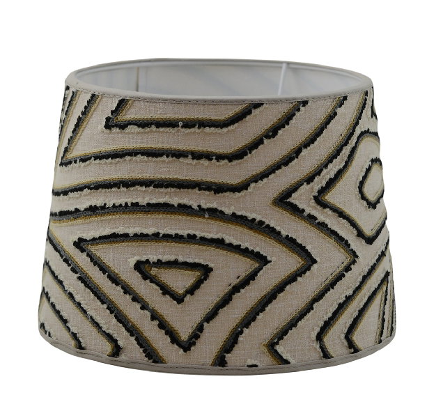 Lampskärm med ett grafiskt mönster i flera färger som sticker ut från lampskärmen. Ger ett levande intryck då lampskärmen inte är helt slät. Välj mellan fyra olika storlekar, samtliga har ett E27-ringfäste.