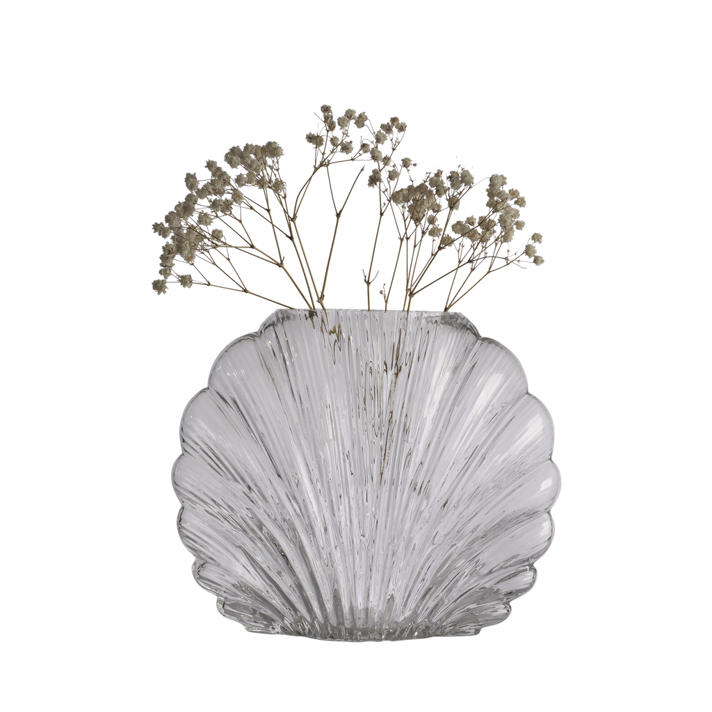 Upptäck en elegant glasvas formad som en snäcka som för in en känsla av hav och sommar i ditt hem. Den mjuka, organiska formen i glas gör den till en dekorativ detalj även utan blommor.