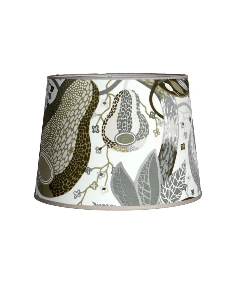 En vacker rund lampskärm som är klädd i ett bomullstyg i det populära frank mönstret, nu i ny färg! Den sprider ett stiligt och mjukt intryck samtidigt som det blir en lekfull touch till din inredning och blir ett vackert blickfång för alla hem.