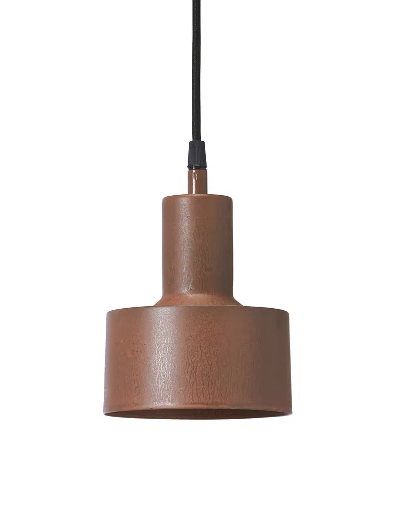 En liten nätt fönsterpendel i en rustik rostfärgad metall som har en stilren och diskret design som gör sig lättplacerad och passar in i alla hemmiljöer. En armatur som ger ett fint ljus ensam i ett fönster eller i grupp över köksön med ljuset riktat nedåt.