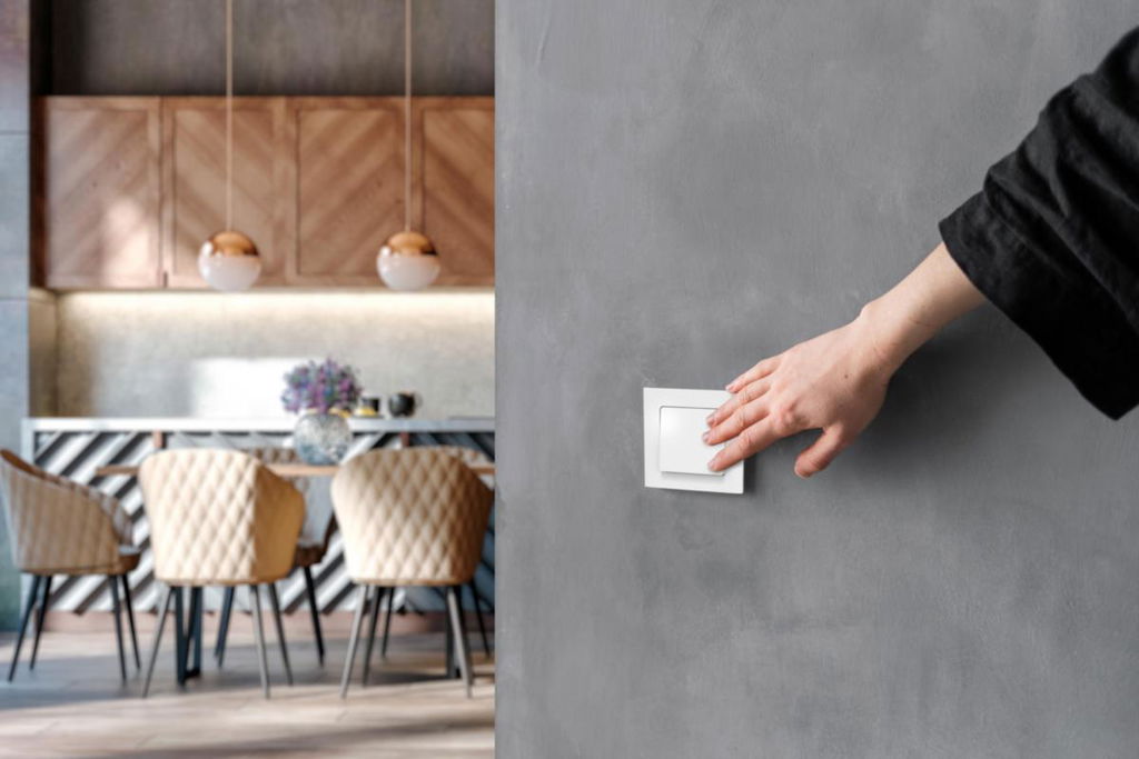 Strömbrytare infälld 1-pol/trapp, Connect 2 Home från Gelia. Strömbrytaren levereras inklusive impulsfjäder och fästklor. När strömbrytaren ska användas tillsammans med en dosdimmer/dimmerpuck behöver impulsfjädern monteras för att få en återfjädrande funktion på vippan. Endast en vippa kan användas med impulsfjäder på brytare med fler vippor.