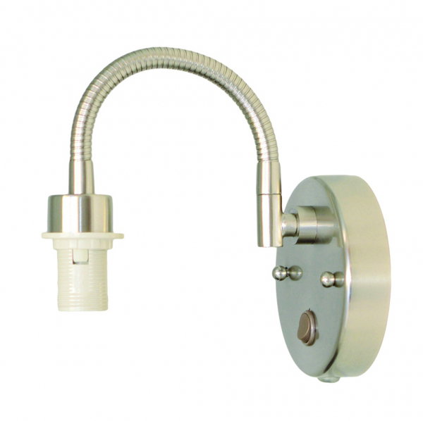 En vacker vägglampa med en flexarm i metall med en borstad stål finish. Har en E14-sockel och matchas med toppringskärmar som har ett E14-toppringsfäste.