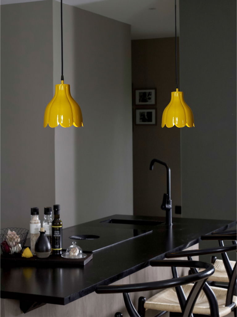 Tulippa kan du placera ensam i ett fönster eller som taklampa ovanför ett mindre bord, eller varför inte placera två stycken ovanför köksbänken.
