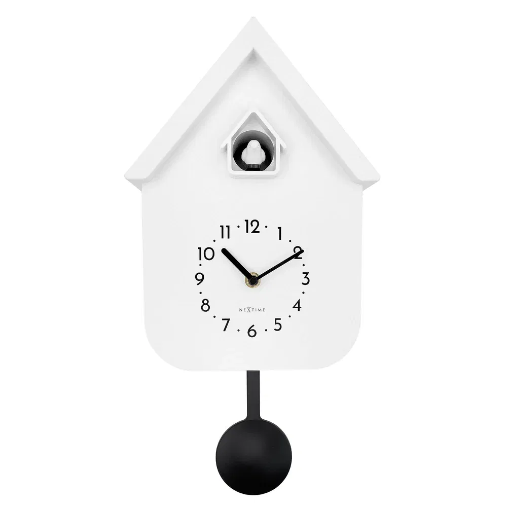 Twitter väggklocka vit från NeXtime. En väggklocka som har en modern tolkning av det klassiska gökuret. Välj när du vill att gökuret ska spela sin vackra fågelstämma, med Twitter kan du vakna upp av gökurets vackra stämma eller vid den klassiska tiden 12:00.