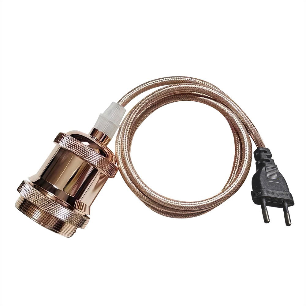 Skapa din egna fönsterlampa/taklampa. Har ett roséguld fäste. En roséguld textilkabel med väggkontakt för vägguttag. Kommer med E27-sockel max 60W.