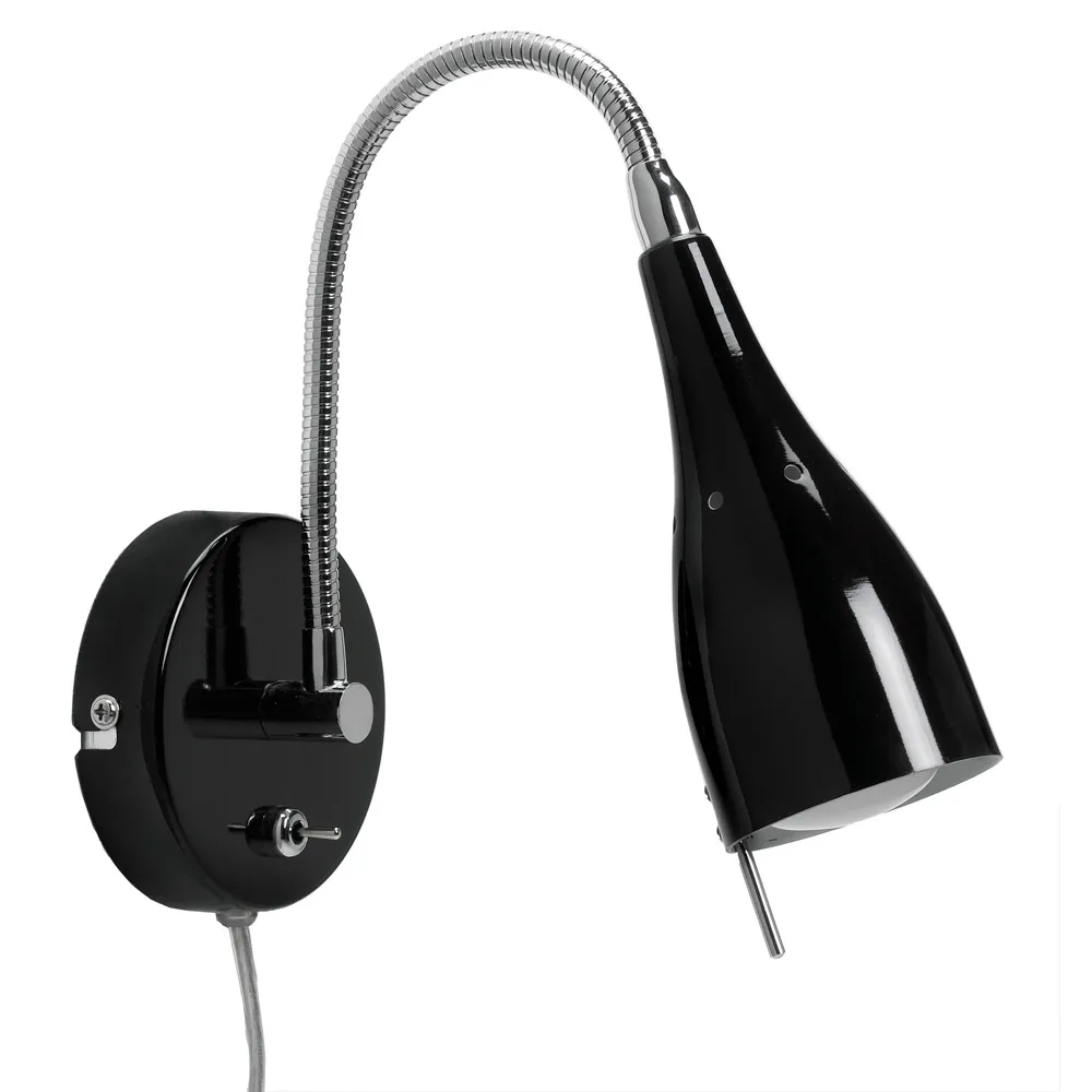 En stilren vägglampa med en praktisk, flexarm som gör att du kan rikta ljuset precis där du vill ha det. Perfekt för sängbordsbelysning eller på kontor.