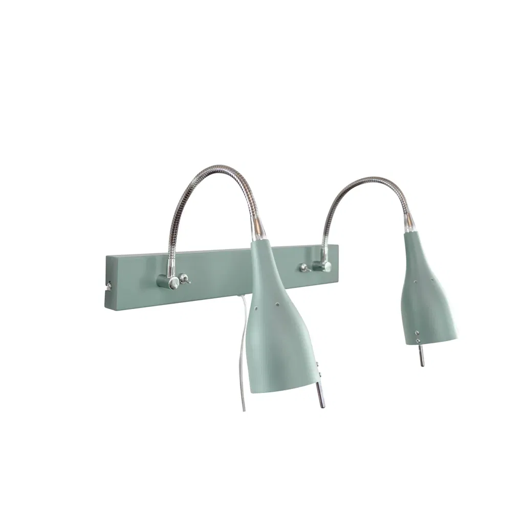 En stilren vägglampa med 2st praktiska, flexarmar som gör att du kan rikta ljuset precis där du vill ha det. Perfekt för belysning ovanför säng.