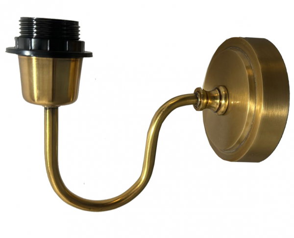 En mindre vägglampa med böjd arm i mässingsfärgad metall. Är perfekt att placera i en hall, trapp eller vardagsrum eller bredvid en dörr.