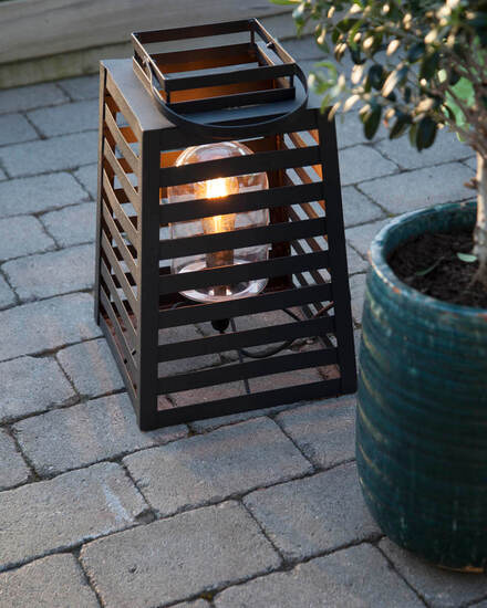 Yankton är en supersnygg lampa för utomhusbruk. Lampan ser ut som en vacker lykta försedd med ett handtag. Den kan fördelaktigt placeras på trappan till din entré eller stiligt pryda och lysa upp ditt trädäck.